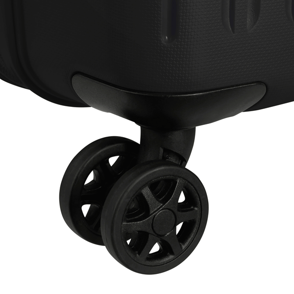 Dual Spinner wheels make it easy to navigate narrow airplane aisles as well as over a variety of surfaces.